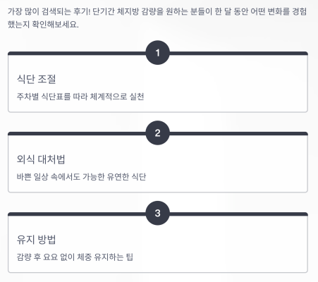 “1~3일 차 후기”, “2주 차 외식 감량 성공기”,