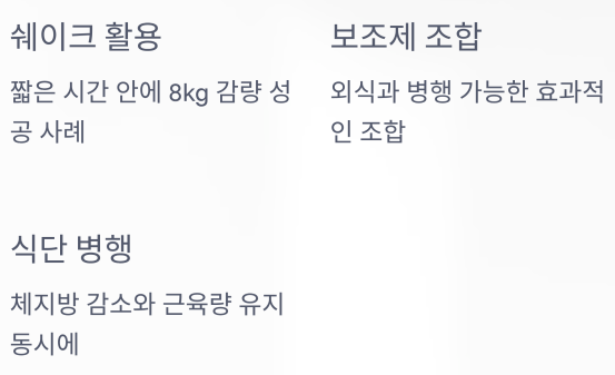 셰이크, 보조제 등을 활용한 체험담도 많습니다.