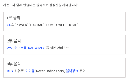 불꽃쇼 음원 리스트도 공개
