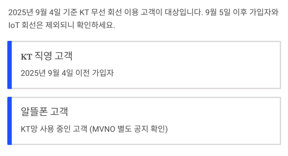| KT 직영 고객 | 2025년 9월 4일 이전 가입자 |