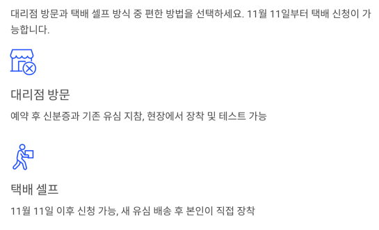 | 택배 셀프 | 11/11 이후 신청 가능, 새 유심 배송 후 본인이 직접 장착 |