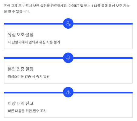 KT는 마이 KT 앱 또는 114를 통해 유심 보호 기능을 쉽게 켤 수 있게 했습니다.