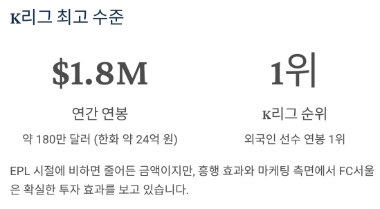 FC서울을 넘어서 K리그 전체의 글로벌 노출과 브랜드 가치를 끌어올리고 있습니다.