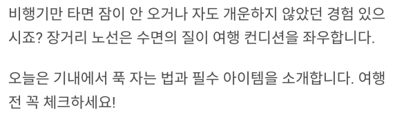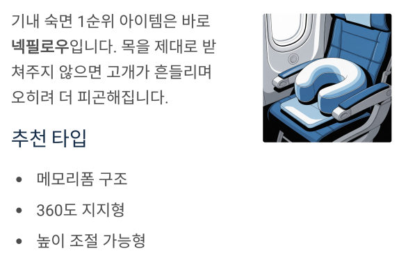 실제로 이런 아이템을 챙긴 분들의 후기를 보면 “10시간 비행이 3시간처럼 느껴졌다”는 말이 있을 정도랍니다.