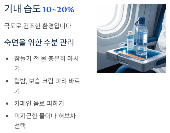 기내는 습도가 10~20%밖에 안 될 정도로 건조합니다.