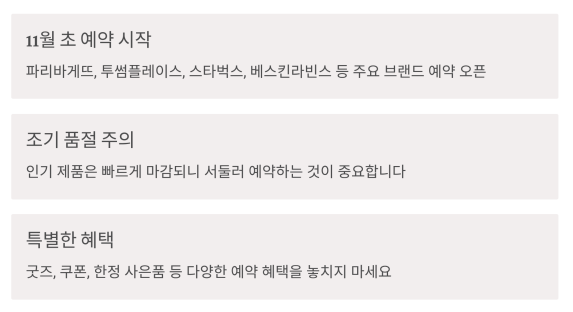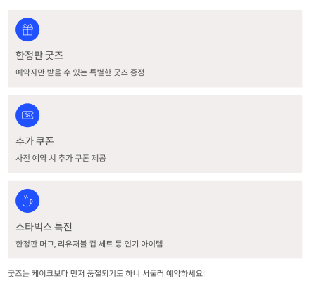 | 스타벅스 | 사전 예약 시 음료 쿠폰, 리유저블 굿즈 세트 제공 |