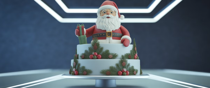- 산타, 트리, 루돌프 등 귀여운 캐릭터 장식 케이크