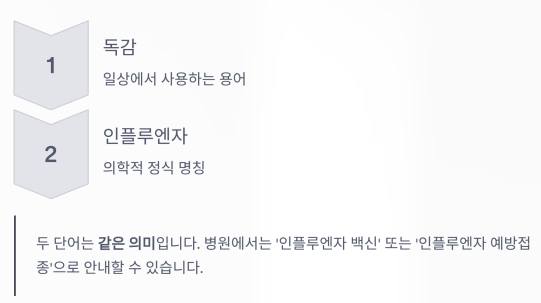 따라서 병원에서는 인플루엔자 백신, 예방접종으로 안내할 수 있습니다.
