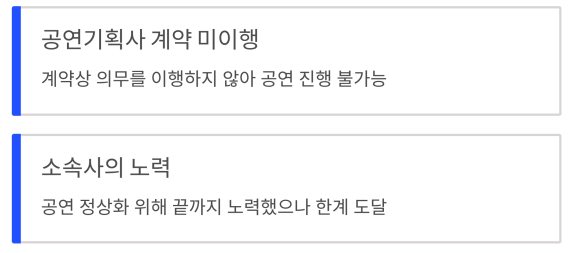 공식 입장에 따르면 공연기획사 측의 계약 미이행이 가장 큰 이유였습니다.