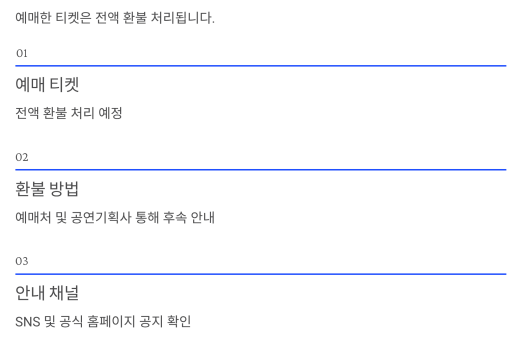 | 예매 티켓 | 전액 환불 처리 예정 |