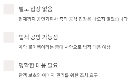 관객 보호와 예매자 권리를 위한 명확한 대응이 요구됩니다.