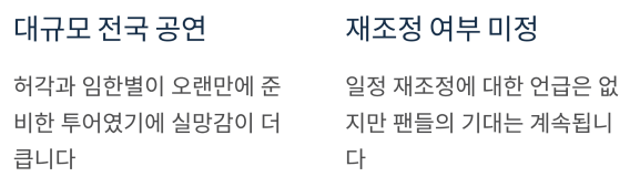 추후 다시 공연이 추진되기를 바라는 팬들의 목소리가 이어지고 있습니다.