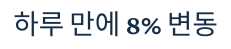 장 마감은 -3%로 마무리되며 하루 만에 약 8%에 달하는 큰 변동성을 보여줬습니다.