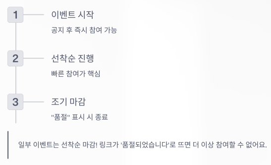 링크가 ‘품절되었습니다’로 뜬다면 더 이상 참여할 수 없어요.