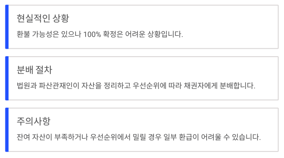 | 보증금 환불 | 파산 자산 분배 후 환급 가능성 있음 |