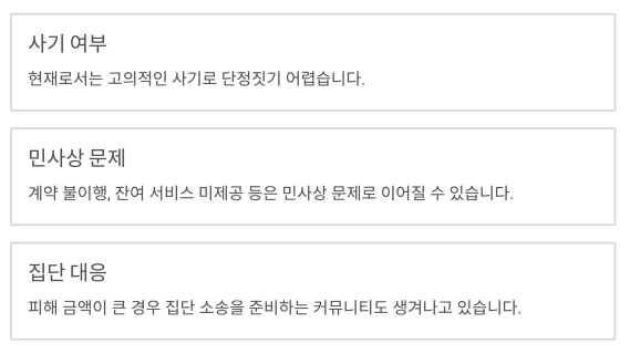 특히 피해 금액이 큰 경우 집단 소송을 준비하는 커뮤니티도 생겨나고 있습니다.