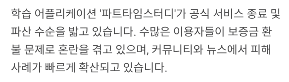 최근 파트타임스터디 파산 소식, 어떤 상황인가요?