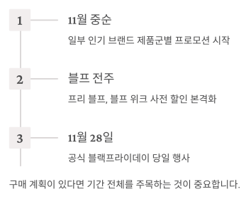 실제로는 블프 당일 하루가 아닌, 행사 전 주간부터 사전 할인과 카드 혜택,