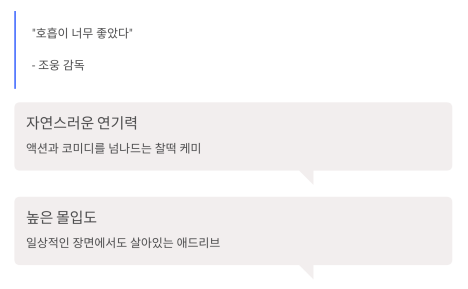 조웅 감독이 "호흡이 너무 좋았다"라고 말할 정도로 배우들 간의 케미도 화제입니다.