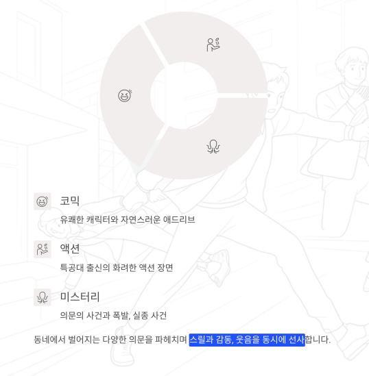 이 작품은 ‘코믹 액션’이라는 장르 위에 미스터리 요소까지