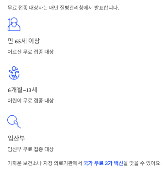 주로 만 65세 이상 어르신, 6개월~13세 어린이, 임산부 등이 해당됩니다.