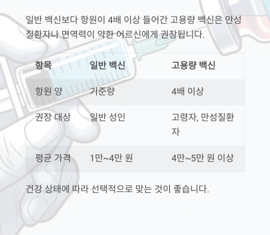 일반 백신보다 항원이 4배 이상 들어간 고용량 백신은
