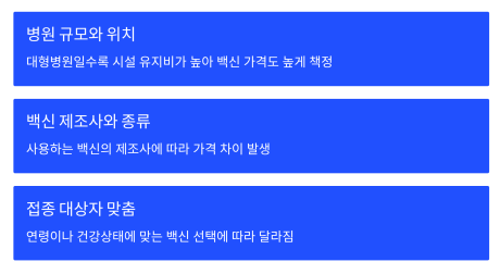 바로 병원별 가격 책정 정책, 제조사, 유통 경로, 고용량 백신 여부 등