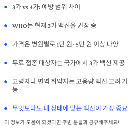 - 무엇보다도 내 상태에 맞는 백신이 가장 중요
