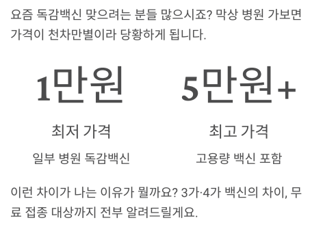 둘째, 사용하는 백신의 제조사와 종류에 따라 가격이 다릅니다.
