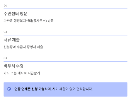 주민센터(행정복지센터)에서 바로 신청 가능합니다.