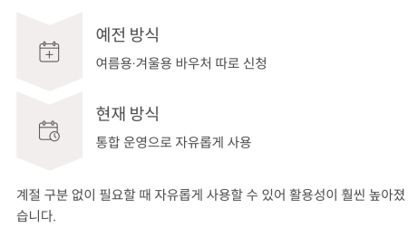 과거에는 여름용(냉방)·겨울용(난방) 바우처가 따로 나뉘어 있었지만
