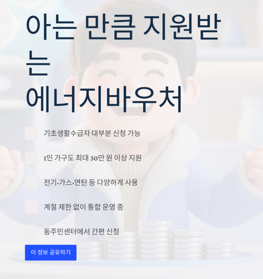 이번 겨울 에너지바우처 꼭 활용하셔서 난방비 부담 확 줄여보세요.