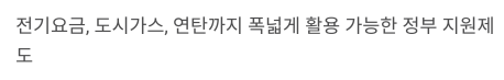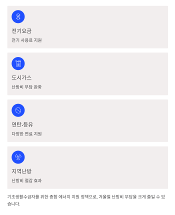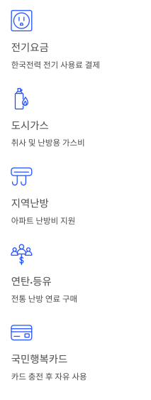 - 전기뿐 아니라 도시가스, 연탄, 국민행복카드 등 다양하게 사용 가능