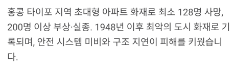 이번 홍콩 참사는 단지 한 도시의 비극이 아닌,
