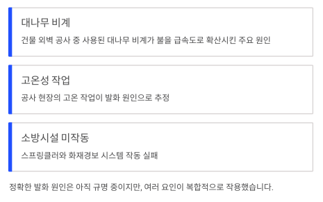 대피 지연과 대나무 비계, 원인 미상 불씨까지 겹쳐 발생한 대형 인명 피해