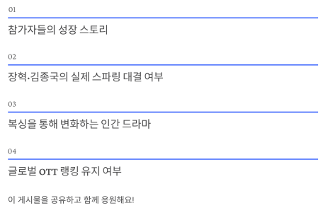 | 우려 요소 | “경쟁 구도보단 진심 있는 서사로 가길” |