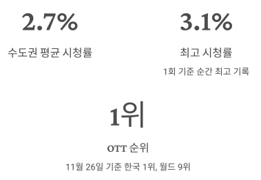 | OTT 순위 | 11월 26일 기준 한국 1위, 월드 9위 |