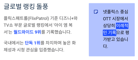 이는 넷플릭스 중심 OTT 시장에서 상당히 이례적인 기록으로 평가받고 있습니다.