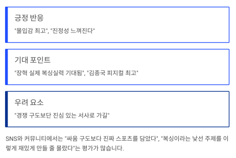 SNS와 커뮤니티에서는 “싸움 구도보다 진짜 스포츠를 담았다”,