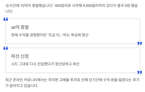 '400달러로 시작해 9,500달러까지 갔다가 결국 0원 됐습니다.'