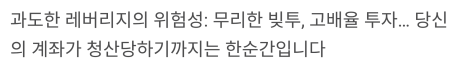 ‘레버리지 투자’의 위험성에 대해 다뤄보겠습니다.