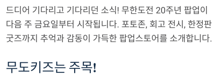 **<무한도전 20주년 팝업>**이다음 주 금요일부터 시작됩니다!
