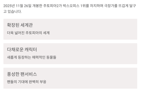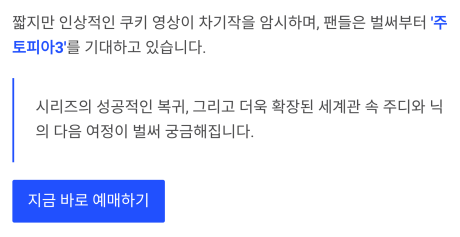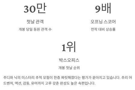 그리고 더욱 확장된 세계관 속 주디와 닉의 다음 여정이 벌써 궁금해지네요.