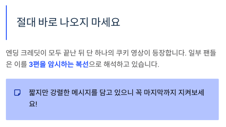 영화가 끝났다고 바로 자리에서 일어나지 말고 꼭 마지막까지 지켜보는 걸 추천드려요.
