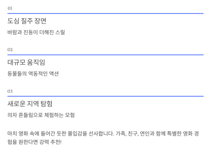 - 연출의 완성도: 4DX 관람에 최적화된 액션 구성