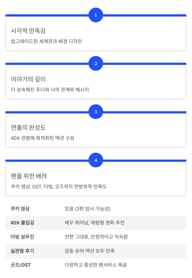 - 팬을 위한 배려: 쿠키 영상, OST, 더빙, 굿즈까지 전방위적 만족도 제공