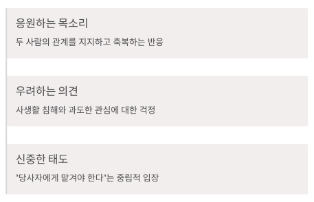 두 사람의 관계를 응원하는 반응도 있는 반면,
