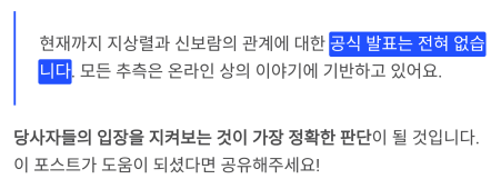 그러나 직접적으로 상대를 태그 하거나 언급한 포스팅은 없는 상태입니다.