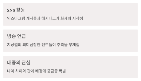 두 사람의 열애설은 SNS 게시물과 방송 언급을 통해 처음 점화됐습니다.