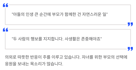 "아들의 인생의 큰 순간에 부모가 함께한 건 자연스러운 일"이라며,